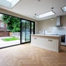All eight bedrooms are doubles, with two modern bathrooms. The ground floor features a fantastic open-plan living space, including a cosy living room, built-in dining area with a cladded feature wall, and kitchen with island, with patio doors leading to a large garden and patio - perfect for socialising and relaxing. French solid oak parquet flooring runs throughout the ground floor, adding elegance and character.