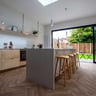 The property boasts an unbelievable bespoke ply kitchen with quartz countertops, French oak parquet flooring throughout, timber cladding, and exposed brickwork. A large dining area flows into the living space, while bespoke aluminium patio doors lead to an Indian stone wrap-around patio and lawned garden - ideal for socialising or relaxing outdoors.