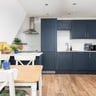 - Modern shared kitchen with integrated fridge/freezer, hob, oven, microwave, and dishwasher