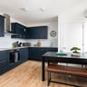 - Contemporary shared kitchen fully equipped with an integrated fridge/freezer, hob, oven, microwave, and dishwasher