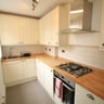 The modern fitted kitchen includes a fridge/freezer, washing machine, cooker, and microwave, making shared living simple and practical.