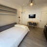 Modern kitchenette: fully functional, with appliances including a fridge, oven.