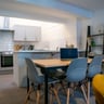 This spacious property, offers six bedrooms, each furnished with desks, comfortable chairs, and ample storage, along with two contemporary bathrooms for added convenience. The inviting living room boasts large, plush sofas and a generous flat-screen TV, perfect for relaxed socialising, complemented by a breakfast bar and a dining table for communal meals. The kitchen is equipped with modern appliances, multiple refrigerators, and a washing machine.