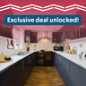 Inside, the property offers six generously sized double bedrooms, two modern bathrooms, and a communal living space designed for relaxation and socialising – complete with comfy sofas and a large flat-screen TV. The kitchen is fully equipped with contemporary appliances, multiple fridges and a washing machine, making shared living easy.