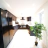 The chic living room features large, comfy sofas and a flat-screen TV - perfect for relaxed evenings with housemates - alongside a generous dining table for shared meals. The well-equipped kitchen includes multiple fridges, modern appliances, and a washing machine, with carefully chosen furnishings to enhance comfort and style throughout.