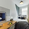 This stylishly refurbished property, offers five ensuite double bedrooms with desks, comfortable chairs, and ample storage. The chic living room boasts spacious sofas and a large flat-screen TV, perfect for socializing, complemented by a sizable dining table for communal meals. The kitchen features modern appliances, multiple fridges, and a washing machine. Each piece of furniture has been carefully selected to ensure both comfort and style.