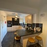 This elegant residence boasts five double bedrooms complete with desks, comfortable chairs, and ample storage. Additionally, there are two modern bathrooms to accommodate residents. The chic living room features large, cosy sofas and a spacious flat-screen TV, perfect for relaxed gatherings, while a generously-sized dining area encourages communal meals.
