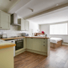 - Modern fixtures such as a breakfast bar, integrated appliances (washer/dryer, dishwasher), and desk space for study