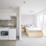 A fully furnished studio flat available, each flat has bed, drawer unit, wardrobe, ensuite shower room, kitchen area, desk and office chair. The kitchenette has a microwave/oven, two ring hob and a fridge with a freezer compartment. There is a central laundry room on the top floor with a communal washer and dryer.