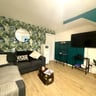 The ground floor features a modern open-plan kitchen and living area with a large corner sofa that converts into a sofa bedperfect for relaxing or having friends over.