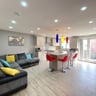 Large kitchen, diner and lounge area, Sofa and coffee table, Large flat screen TV, Table and stools, Dishwasher, Washing machine and tumble dryer, Large fridge freezers, Large stove and oven