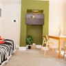 - The lounge area includes two three-seater leather sofas and a large flat-screen TV ideal for relaxing and socialising with your housemates.