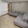 Laminate flooring, large corner sofa.