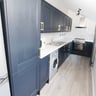 2 modern, part-tiled bathroom suites, both with shower cubicles with matt black fittings, heated towel rail, w.c and wash-hand basin.