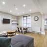 A modern lounge with ample seating and it comes with a wall mounted TV.