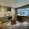 Modern kitchenette: fully functional, with appliances including a fridge, oven.