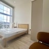 Both bedrooms are generous doubles, each furnished with double wardrobes, a desk, and a chair, making the apartment ideal for students or professionals needing comfortable study or work space.