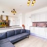 Kitchen / Lounge / Dining Area: A spacious open-plan area ideal for socialising, dining, and relaxing, complete with a generous TV. The impressive fully fitted kitchen features modern, integrated units comprising two large fridge freezers, washer/dryer, Two 4-zone electric hob, two electric oven, extractor fan, generous worktop space, and ample storage.