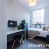 The spacious living room is equipped with a large flat-screen TV and soundbar, making it perfect for unwinding after a long day. Each bedroom comes with its own TV, a fitted desk and chair for studying, and plenty of storage with large wardrobes. The flat features new furniture and appliances, including a washer/dryer, fridge/freezer, and a fully fitted kitchen, ensuring your living space is as convenient as it is stylish.