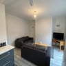 The property features a newly fitted open-plan kitchen (2023) with built-in oven & hob, fridge, washing machine, and microwave-perfect for student living. The open-plan lounge provides plenty of seating and a TV.