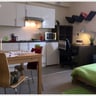 Studio 5 has a double bed, two metres of wardrobe space, bookshelves and a desk with executive style chair. The lounge area has comfy chairs, coffee table and dining table with chairs.