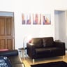 A Well presented with an attractive lounge with leather sofas, wooden flooring.