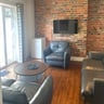 Stunning Lounge with Leather Sofas, exposed brick walls