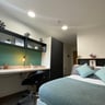 - Small double, under-bed storage, wardrobe, personal study space with desk and chair
