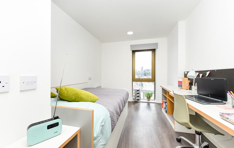 With a mix of spacious en suite rooms in shared apartments and private studios (that are also great for sharing – and we don’t charge you any extra!). Each room comes with a comfy small double bed, stylish modern furniture, study area and kitchen/dining facilities.