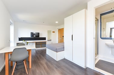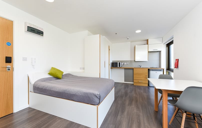 With a mix of spacious en suite rooms in shared apartments and private studios (that are also great for sharing – and we don’t charge you any extra!). Each room comes with a comfy small double bed, stylish modern furniture, study area and kitchen/dining facilities.