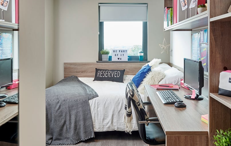 Enjoy the privacy of your own room while sharing a lounge and kitchen with other students.