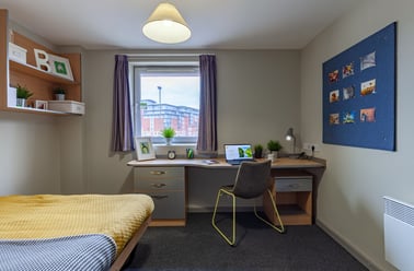 Situated by the River Soar, 10-15 minutes’ walk from the University of Leicester, De Montfort University, and the city centre, Filbert Village is a great choice for accommodation for students in Leicester. Forget having to walk far for your local supermarket, there’s a Lidl right over the river, and easy access to many amenities! When it comes to your room, we have a range of styles for you to choose from. Live with your besties in our brilliant en suite flats. Equipped with cosy beds, shelving, and lots of storage space, you’re guaranteed an unforgettable stay here whilst making memories for life! Our studio rooms are designed for students who prefer their own privacy and space. Furnished with all the amenities, including a kitchen with a combi oven, cooking hobs, and a fridge freezer. For socialising outside of your flat, the common room is brilliant and has been kitted out with a bunch of games and comfy seating for you to relax and unwind. It’s ideal for those wanting to make new friends and get away from uni life for a hot minute. There’s a TV for you to watch your fave shows and a table tennis table to allow you to unleash your competitive side. When it comes to utilities, there’s an onsite laundry room for you to use and free wifi throughout the property. The price is all utility bills included, so forget worrying about anything other than your rent! Interested? Book your room today - we can’t wait to have you on board! Key Features • Communal Lounge • Communal TV • Pool Table • Study Space • Laundry Room • Recycling • Bike Storage • All Utility Bills Included • Communal Kitchen • Courtyard • Internet • Contents Insurance Included • Cinema Lounge • Games Hub • Parking (Additional Charge)¹