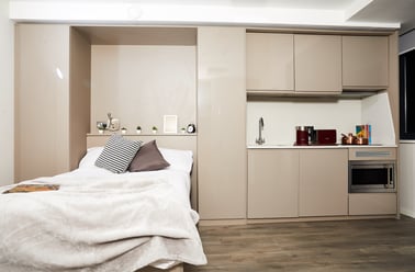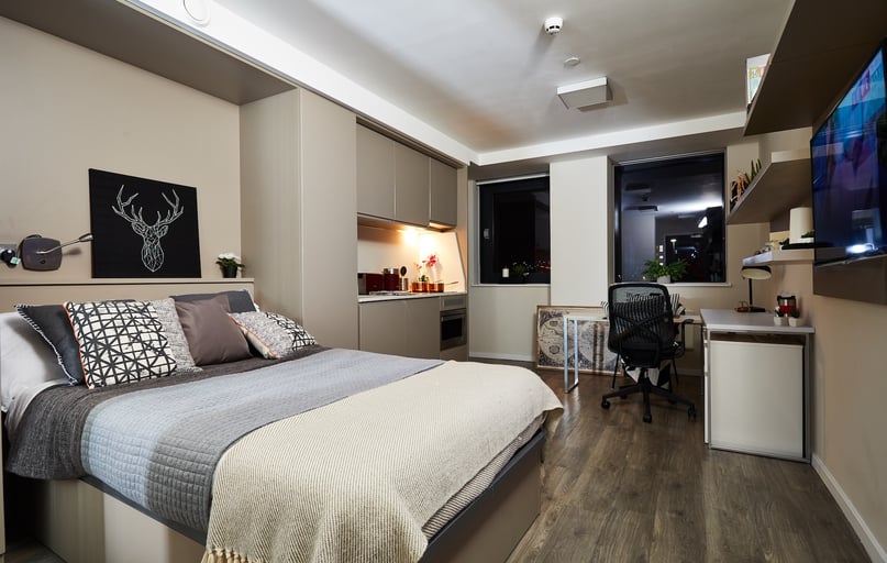 Choose between four types at Richmond House near Southampton Solent Uni, across 11 floors. All studios include a kitchen, ensuite bathroom, study space and storage space.