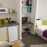 A comfy studio with a queen or double sized bed for you to stretch out in, a bed side unit to keep all your prized possessions, under-bed storage, shelves, a notice board, wardrobe with a fitted mirror and a large desk for you to study at! Not forgetting the ensuite with a shower, wash basin, toilet and mirror, and the kitchenette, which features a 2 ring hob, microwave and fridge/freezer. Also included as standard is a 20mb fibre optic broadband connection with WiFi throughout.