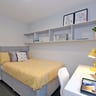 • Shelves, notice board, study desk with drawers, chair, bed base, mattress and mattress protector.