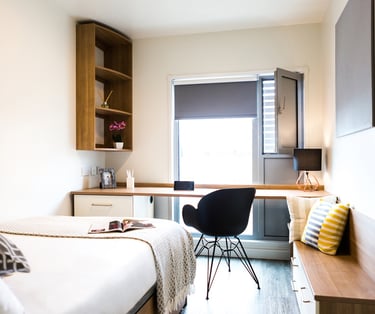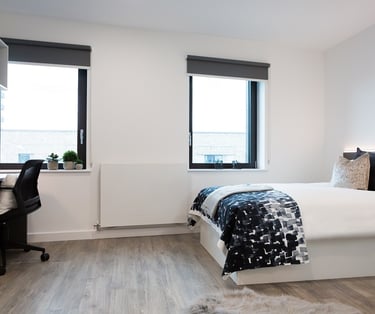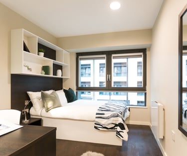 Located in the heart of the city, his modern building has far reaching views across London. Situated just minutes’ walk from King’s Cross St. Pancras station, this is a Zone 1 location with unrivalled transport links across the city, country and the rest of Europe and just a few tube stops away from most major London universities.