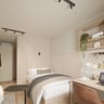 En-suite rooms come with storage, workspace, a small double bed and a private shower room. Students share an equipped kitchen and living space with up to five other people, which makes it the perfect option for booking with a group of friends. Studio rooms offer private living space and a self-contained kitchen with a dishwasher, fridge/freezer and microwave.