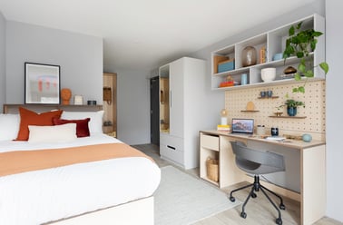 Conveniently located to cater to your academic needs, Bridle Works offers unrivalled proximity to Glasgow's top universities. Just a brisk 4-minute walk to The University of Strathclyde and an 8-minute stroll to Glasgow Caledonian University ensure that you're never far from your lectures and campus activities. Additionally, a quick 17-minute bus journey will take you to the University of Glasgow, providing easy access to a wide range of academic resources and opportunities. Step into a world of luxury and convenience with Bridle Works' impressive array of amenities designed to enhance your student experience, such as free washer-dryers and dishwasher in private studios. Unwind and socialise in the communal lounge or catch up on your favourite shows in the communal TV area. You can focus on your academics without distraction in the study areas, study rooms, and seminar space, offering quiet spaces for concentration and collaboration. When you would like to take a break from all the studying, head to our relaxation rooms which are perfect to clear your mind! Stay engaged with our vibrant social calendar, packed with events and activities to forge lasting friendships and create unforgettable memories. You can enjoy calm evenings in the tea lounge or host private gatherings in the private dining room. Bridle Works also has private study rooms, so you can have focused study sessions with your mates without any distractions. Let loose and showcase your talents with karaoke nights or watch your favourite movies in our on-site cinema! Enjoy the convenience of a TV in your shared flats and studio as well! You can maintain a healthy lifestyle with access to the gym and be sure to take advantage of our bicycle storage for sustainable commuting options within the city. Unwind after a long day of studies at the dry bar lounge, where you can enjoy complimentary coffee unwind with friends and challenge your mates to a game in the games area. Have a special occasion to attend? Get ready in the glam room with chairs, mirrors and perfect lighting before heading out! Enjoy stunning views from the roof terrace and enjoy BBQ nights in our designated BBQ area when the weather gets warm! Rest assured knowing the contents insurance is included, giving essential coverage for your personal belongings, and offering peace of mind in the event of theft, damage, or loss! When it's time to explore Glasgow in your free time, head to iconic landmarks such as Glasgow Necropolis, Kelvingrove Art Gallery and Museum, Botanic Gardens, and Glasgow Cathedral, where you can immerse yourself in the city's rich history and culture. Ready to embark on your university journey in style? Secure your spot at Bridle Works today and experience the epitome of luxury student accommodation in Glasgow. Don't miss out on the opportunity to elevate your student experience. Book now and make the most of your university years! Key Features • Gym • Private Dining • Rooftop Terrace • Cinema Lounge • Study Space • Communal Lounge • Communal TV • CCTV • Onsite Maintenance • Bike Storage • Games Hub • High Speed Internet • All Utility Bills Included • Coffee Machine • Wellbeing Space • Free Washing Machine / Dryer