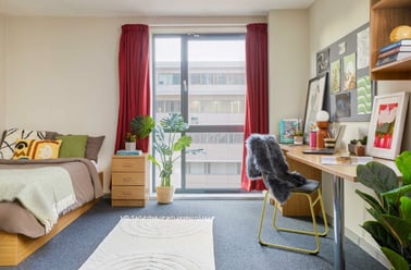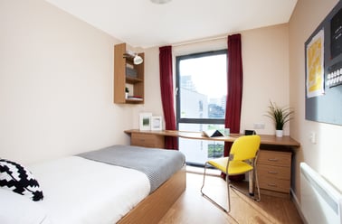 Opt for an en-suite room to share kitchen and lounge spaces with fellow flatmates, or indulge in the privacy of a studio, where every amenity is exclusively yours. Beyond your personal space, discover our inviting common room complete with plush sofas, a television, table football, and pool. Need to hit the books? Our dedicated study room offers the perfect environment for academic focus.