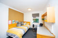 Rooms are arranged in flats with 4 to 6 people sharing a communal kitchen and toilet and shower facilities. All kitchens contain a cooker, fridge freezer, microwave, kettle, toaster, sink, drainer, cupboards, work tops and table and chairs or breakfast bar with seating. Single standard rooms are quite spacious and have a single bed, a wash basin, bookshelves, a wardrobe, a desk and chair and hi-speed internet. Flatmates share a separate shower room and toilet which are cleaned regularly by our cleaning team. There are also a small quantity of ensuite and adapted rooms at this hall. Hall facilities include a laundry, free bike storage, outside seating area and a common room with table football, a pool table, dartboard, arcade games, X-box and a lounge area with flat screen TV.