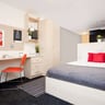 Our studio apartments are ideal for students wanting to live comfortably, with the added extra of privacy. They’re self-contained and because the kitchen area is separated by a wall, these studios give off a one-bedroom apartment feel! Featuring a double bed, desk and chair area, lots of shelving space, and a kitchen, you have everything you could need here to thrive from life at university.