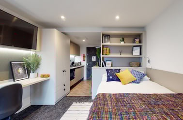 Canvas offers next generation student accommodation in Manchester. Situated in the heart of the city, we’re within a 20 mins walk of University of Manchester, Manchester Metropolitan, Oxford Road train station and the town centre, plus a 25 mins journey via public transport from University of Salford. Canvas strives to provide residents with more than just a room and give you the tools to make your mark on the world. We offer a range of studio, en suite and shared apartment options, plus a variety of amenities and services including: • On-site gym • Study spaces • Social spaces • Private dining room • Cinema • All-inclusive bills • Wifi • Laundry facilities • 24-hour on-site team • On-site & virtual events programme • Wellbeing support We’re committed to keeping residents safe and ensure you feel secure and supported throughout your time at Canvas.