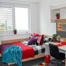 Premium Shared Facility Rooms: A bright room, with a double bed and a beautiful shared kitchen complete with modern kitchen island. Join the vibrant community of 9-12 students in a flat, complete with shared kitchens, dining, and lounge areas. Plus, you'll have the convenience of one bathroom shared between just two students. With 285 of these rooms available, you'll have plenty of opportunities to make new friends. Typical room dimension: 8.2m².