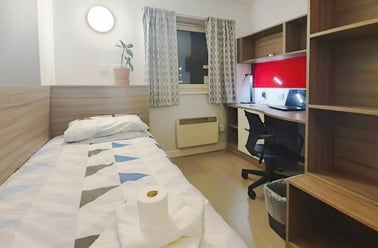 A student accommodation in Southampton, right in the heart of the city, Hamwic Hall is a beacon of convenience for students as it's only a 10 minute walk from the bustling main Solent University campus and 15 from ONCAMPUS. Hamwic Hall offers a haven of individuality and inclusivity, with comfortable modern ensuites that provide comfort and desk area to study. In this digital age, connectivity is king, and all study-bedrooms boast an internet access point, facilitating seamless connection to your computer. The communal spirit thrives in our communal areas. Each ensuite room is designated a communal kitchen to encourage culinary creativity and camaraderie, and a common room awaits with lounge, breakfast bars, free pool table and an atmosphere of relaxation and bonding. For those practical necessities there is a dedicated on site laundry room with washing machines and tumble dryers, ensuring your daily routine remains effortless. Hamwic Hall doesn't just provide accommodation; it offers a gateway to a thriving student experience, where comfort and community converge. Welcome home. Key Features • Communal Lounge • All Utility Bills Included • Onsite Maintenance • Pool Table • Laundry Room • Bike Storage • Internet