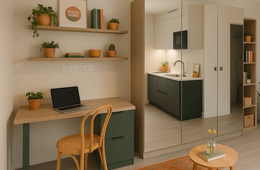 Our beautifully designed studio apartments are all yours. Each comes with a comfy Hypnos double bed, an integrated kitchen featuring premium Smeg appliances, a smart TV for unwinding, and your own private en-suite bathroom. It's the ultimate hassle-free living space, giving you the freedom to focus on your studies and enjoy student life.