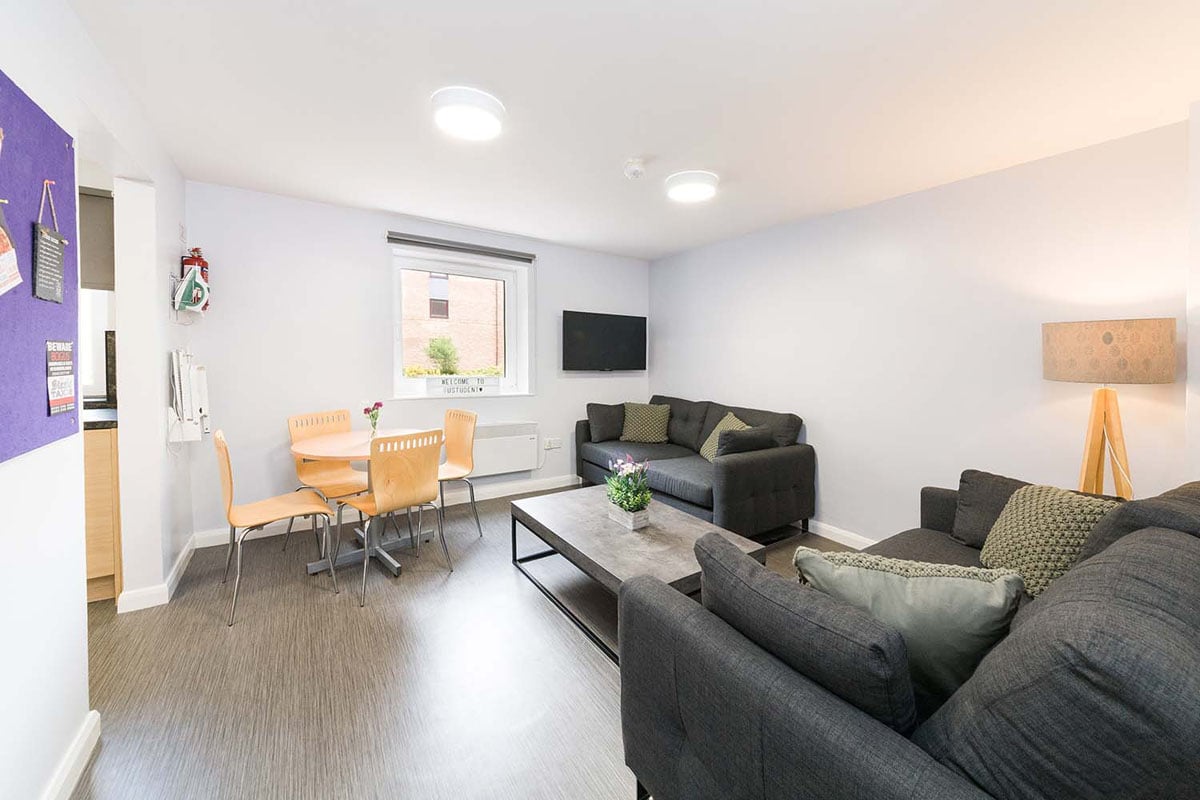 Each shared lounge is furnished with comfy seating, widescreen TV and kitted out with super-fast Wi-Fi, while every shared kitchen has a dining table with seating. Equipped right down to the knives and forks, all kitchens include a kettle, toaster, fridge-freezer, four-hob cooker, dishwasher, cutlery and crockery.